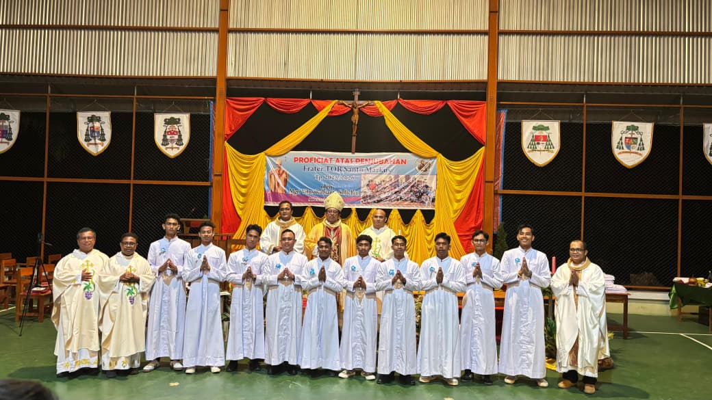 Perayaan Ekaristi Penerimaan Penjubahan Frater TOR 2025 berlangsung penuh sukacita. Perayaan ini ini dipimpin oleh Mgr. Vitus Rubianto Solichin Uskup Keukuspan Padang ,bersama para imam lainnya. Aula seminari dipenuhi para orang tua Frater, keluarga, dan umat yang datang untuk mendukung perjalanan panggilan para fraterDalam suasana liturgi yang khidmat, momen penjubahan menjadi titik awal perjalanan serius para frater dalam memasuki Tahun Orientasi Rohani. Prosesi ini bukan sekadar tanda resmi, tetapi langkah awal perjalanan dan kesediaan dalam penyerahan diri kepada Tuhan. Hal inilah yang ditekankan Bapa Uskup Vitus ketika menyampaikan homilinya.