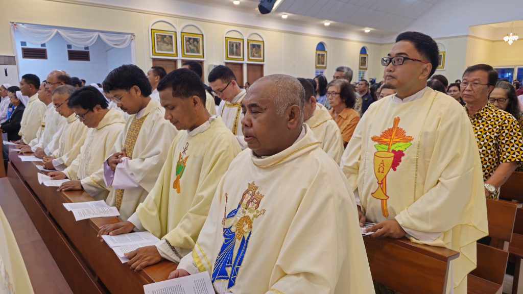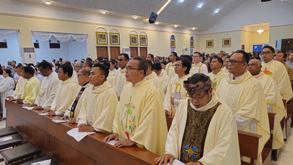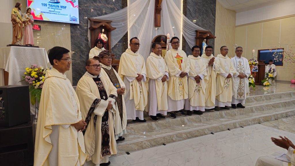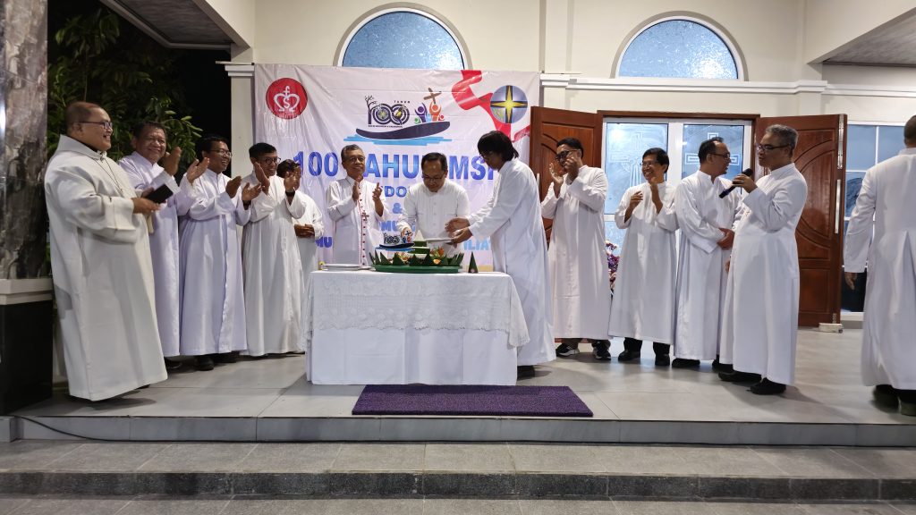 Usai perayaan Ekaristi, sukacita dilanjutkan dengan pesta syukur sederhana melalui pemotongan tumpeng bersama para imam MSF, menutup perayaan 100 tahun MSF dengan penuh rasa syukur dan kebersamaan. (Vsh)