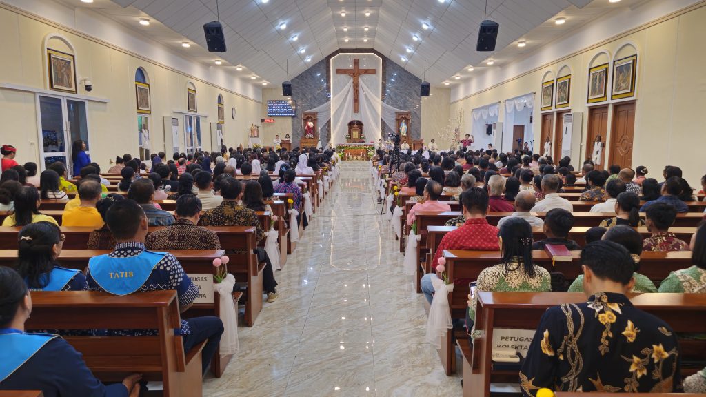 Umat tampak memenuhi gereja, juga turut hadir para suster dari berbagai komunitas serta para bruder.