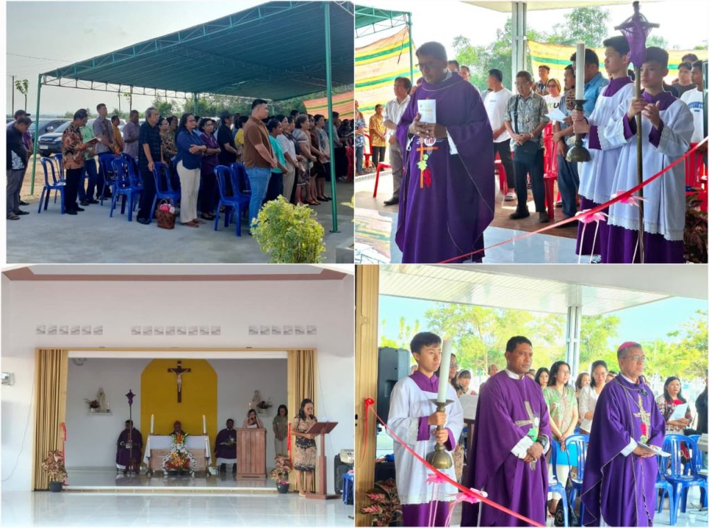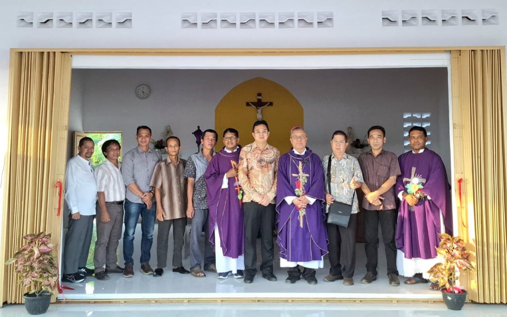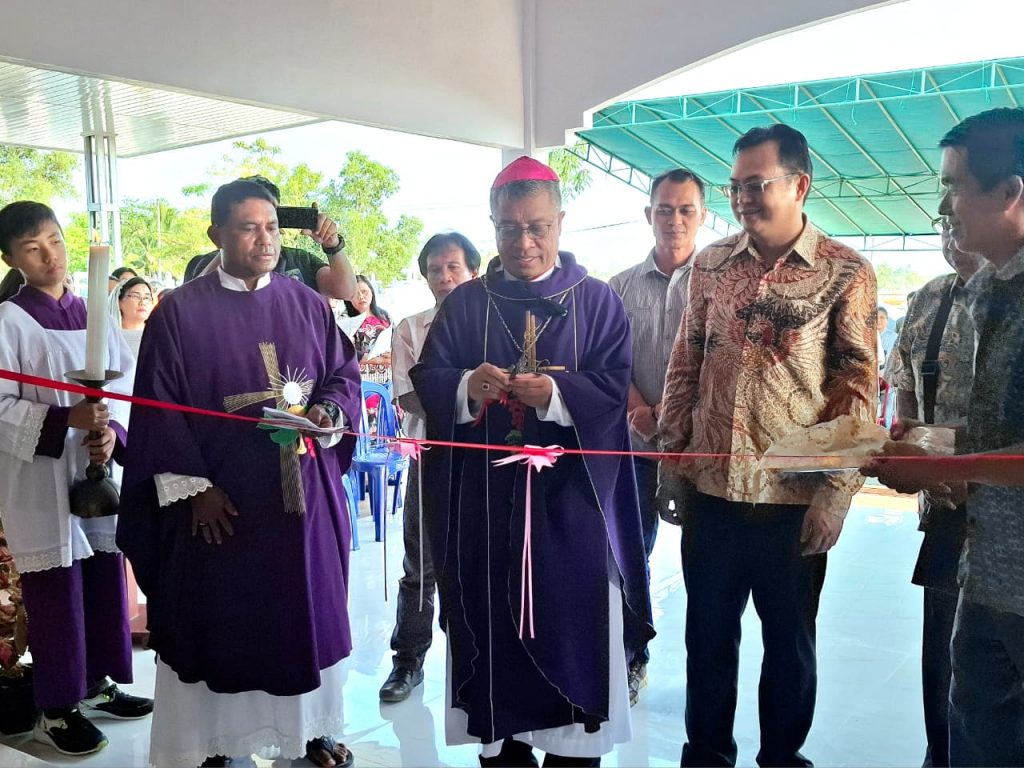 Peresmian diawali dengan prosesi pemotongan pita oleh Bapa Uskup Adrianus, didampingi para donatur, Pastor Paroki Mentok Romo Markus Malu, Pastor Vikaris Romo Raymandus Raja Doren, serta turut dihadiri Bupati, Camat dan umat setempat.