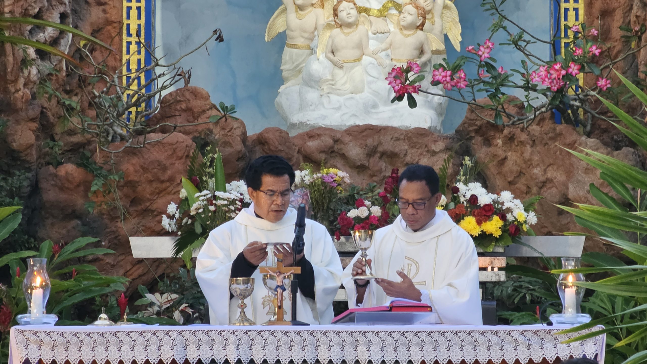 Misa pembukaan ini dipimpin oleh RD. Yosefus Anting Pattimura bersama RD. Bernardus Somi Balun. Kedua imam mengajak umat untuk menjadikan doa Rosario sebagai jalan sederhana namun mendalam dalam mempererat hubungan dengan Allah dan mendekatkan diri pada misteri hidup Kristus.