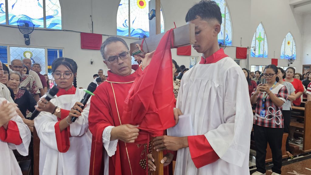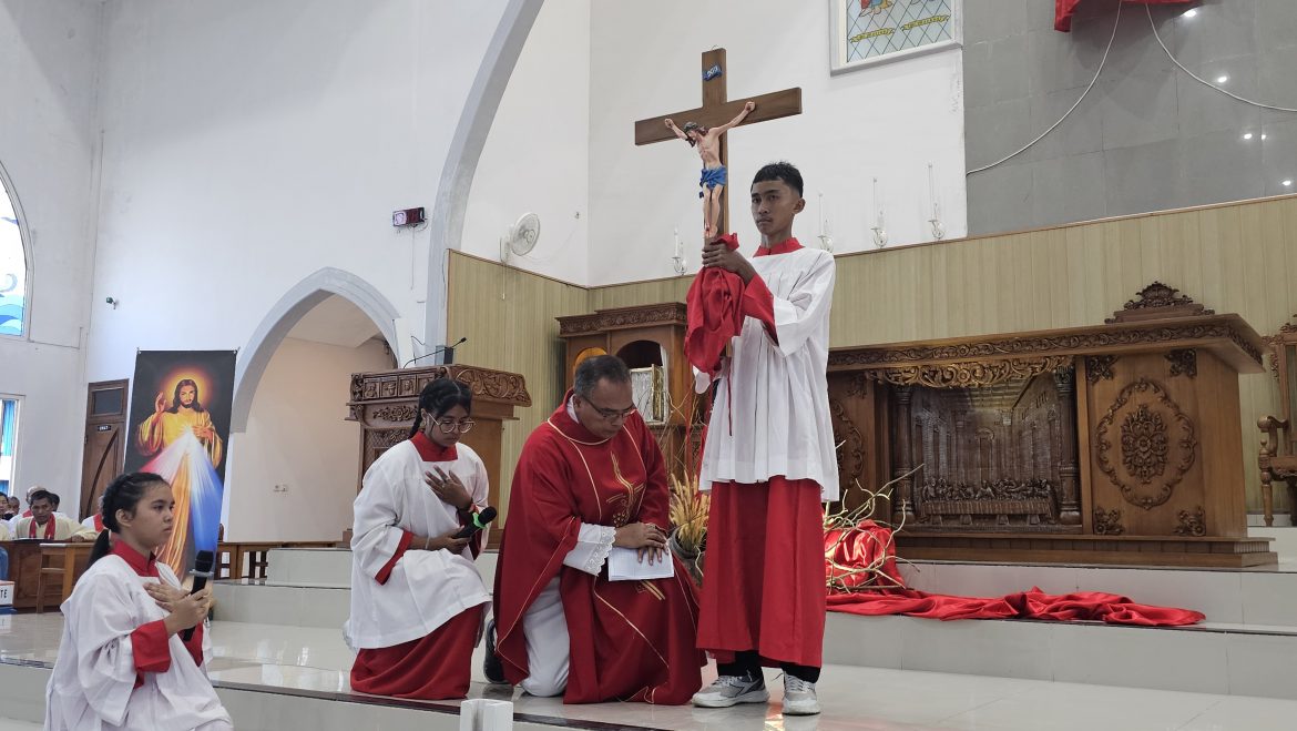 Pangkalpinang, Berkatnews.com – Keheningan menyelimuti ibadat Jumat Agung di Gereja Katolik Santa Bernadeth, Jumat (03/04/2026). Tanpa lagu pembuka yang meriah dan dengan iringan musik yang sangat dibatasi, umat diajak masuk dalam suasana duka dan permenungan mendalam untuk mengenang sengsara dan wafat Yesus Kristus di kayu salib. Ibadat Jumat Agung yang dipimpin oleh Romo Yosef Setiawan, merupakan bagian dari rangkaian Trihari Suci, yaitu Kamis Putih, Jumat Agung, dan Sabtu Suci, yang menjadi puncak perayaan iman Kristiani menjelang Hari Paskah.