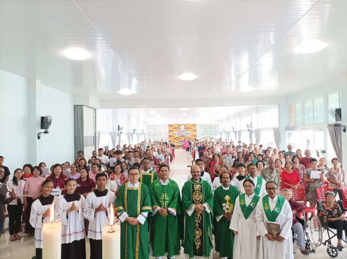 Misa dipimpin oleh Romo Anton Moa Tolipung bersama Romo Wendilinus Pantaleon, Romo Marcen Damanik, serta Diakon Silvester Rasun Moro dan Diakon Mitsie Benson Sitepu.