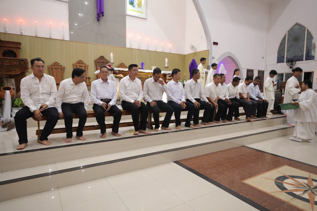 Usai homili, perayaan dilanjutkan dengan prosesi pembasuhan kaki terhadap dua belas rasul. Tindakan ini menggambarkan bagaimana Yesus, meski sebagai Guru dan Tuhan, rela merendahkan diri, bahkan mengambil posisi paling rendah di hadapan mereka yang dilayani-Nya.