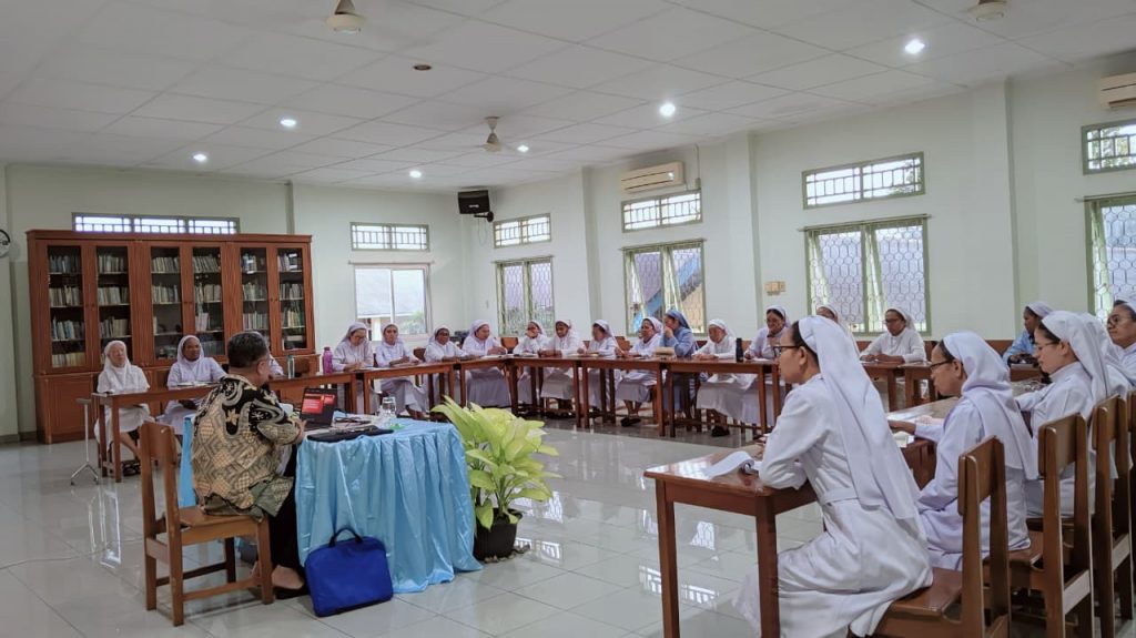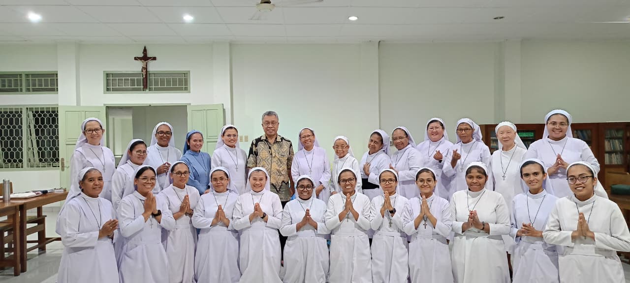 Dalam kunjungan ini, Bapa Uskup dan para suster melakukan dialog dan sharing bersama serta pemaparan materi oleh bapak uskup yang membahas isi SAGKI 2025. Pertemuan diawali dengan sharing bapak uskup tentang perjalanan merayakan paskah bersama umat di pulau – pulau. Para suster sangat antusias dan bersukacita melihat foto dan video pelayanan bapak uskup di pulau – pulau, dan mengagumi keindahan alam serta antusiasme umat, iman umat yang terus bertumbuh dan berkembang di tengan segala keterbatasan yang ada.