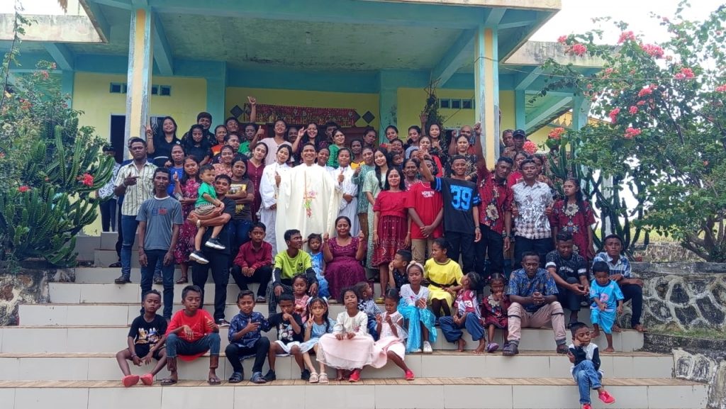 Suasana kebersamaan romo martin bersama umat di pulau