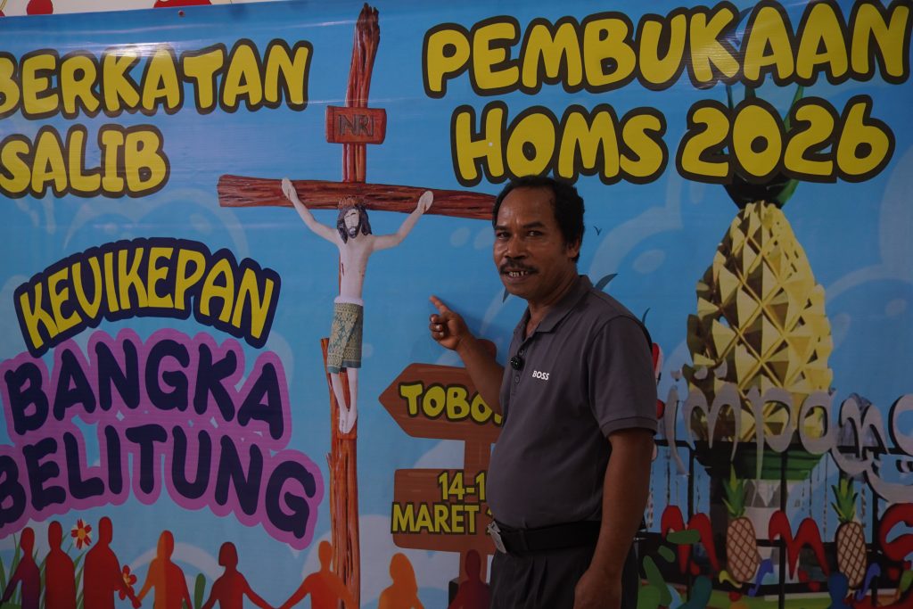 Toboali, Berkatnews.com — Di balik kemeriahan Pemberkatan Salib dan Pembukaan HOMS 2026, Salib HOMS yang dihadirkan menyimpan makna mendalam. Bukan sekadar tanda iman, Salib HOMS 2026 dirancang dengan identitas khas Bangka Belitung. Hal ini disampaikan Romo Wenslaus Pantaleon, Ketua Komkep Keuskupan Pangkalpinang saat ditemui tim Berkatnews.com usai rangkaian kegiatan, Minggu (15/3/2026).