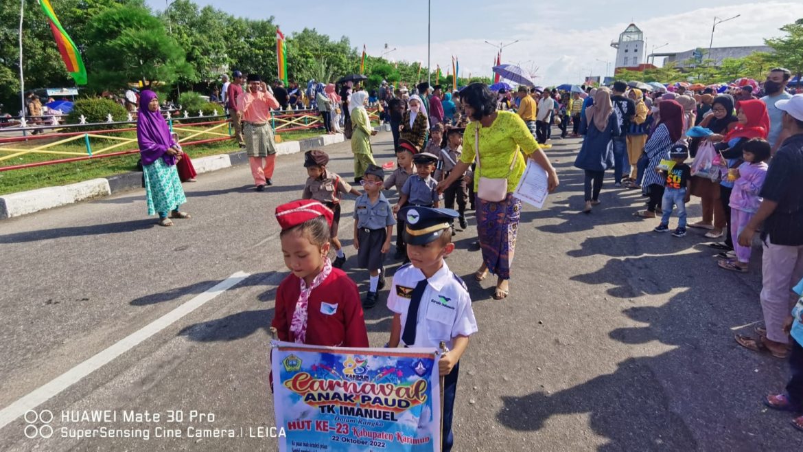 Karimun, Berkatnews.com– Sebanyak 154 lembaga Taman Kanak-kanak (TK) dan Pendidikan Anak Usia Dini (Paud) atau Kelompok Bermain (KB) se-Kabupaten Karimun termasuk TK dan Paud Imanuel Sei Bati ikut memeriahkan pawai karnaval dalam rangka memperingati HUT ke-23 Kabupaten Karimun, Sabtu (22/10) pagi.