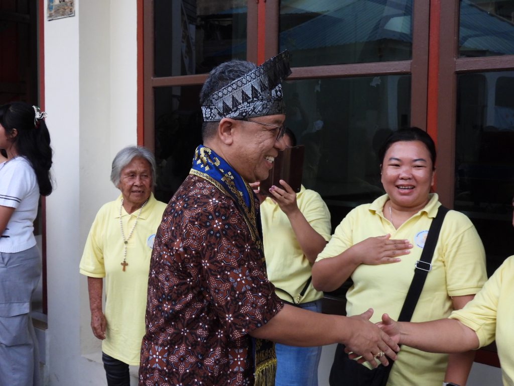 Tarempa, Berkatnews.com – Kehadiran Uskup Adrianus di Paroki Stella Maris Tarempa, Kepulauan Anambas, pada Minggu (29/03/2026), disambut dengan penuh sukacita oleh umat. Bersama Rm. Martin da Silva, beliau tiba dan langsung menerima sambutan hangat berupa pengalungan selendang serta pengenaan tanjak khas budaya Tarempa di depan pastoran dan gereja.